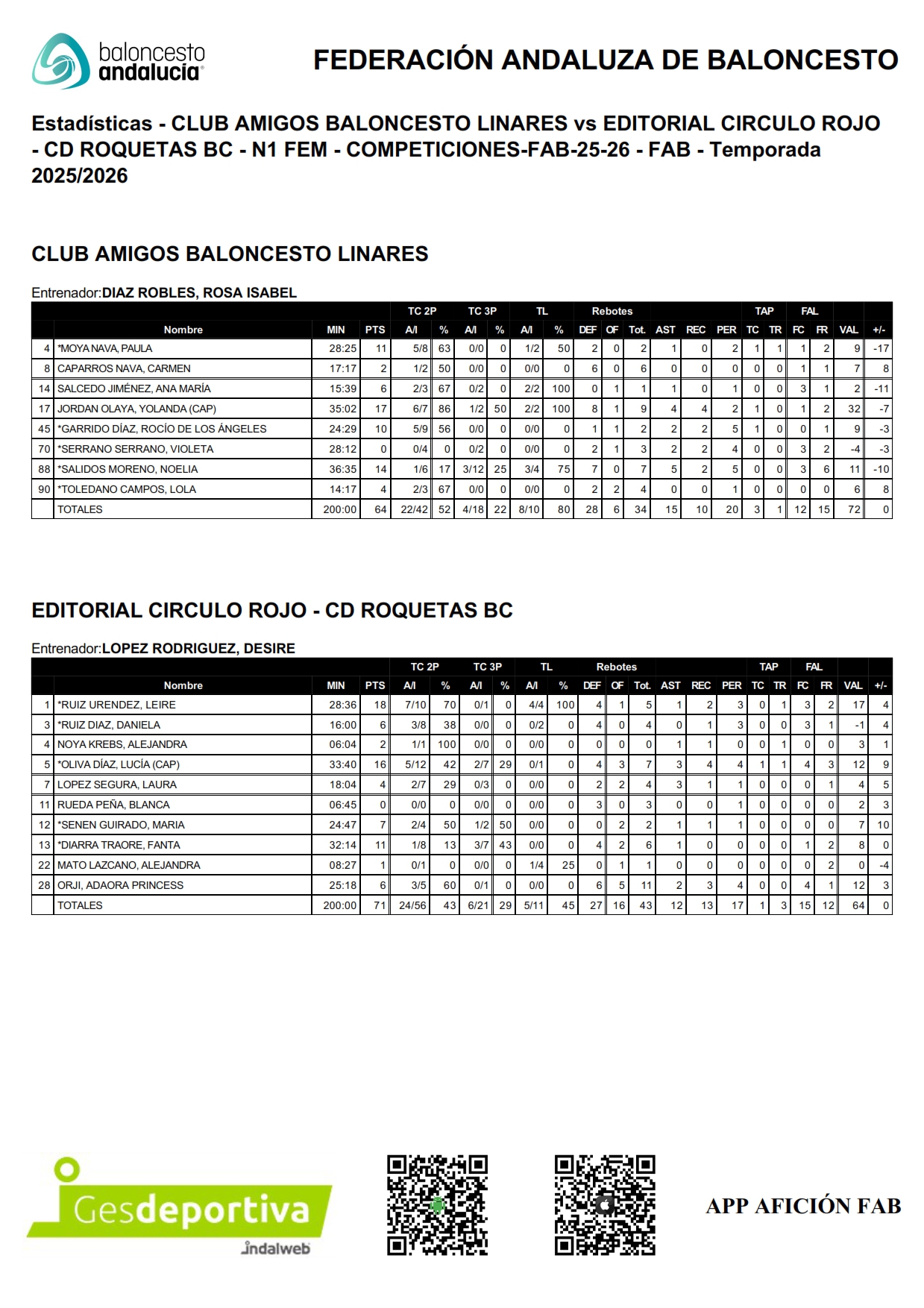 Destacaron por parte local Yolanda Jordán con 17 puntos y 32 de valoración y Liere Ruiz por parte visitante con 18 puntos y 17 de valoración. Dirigieron el encuentro los Sres.: De Haro y Ortiz, sin eliminadas.