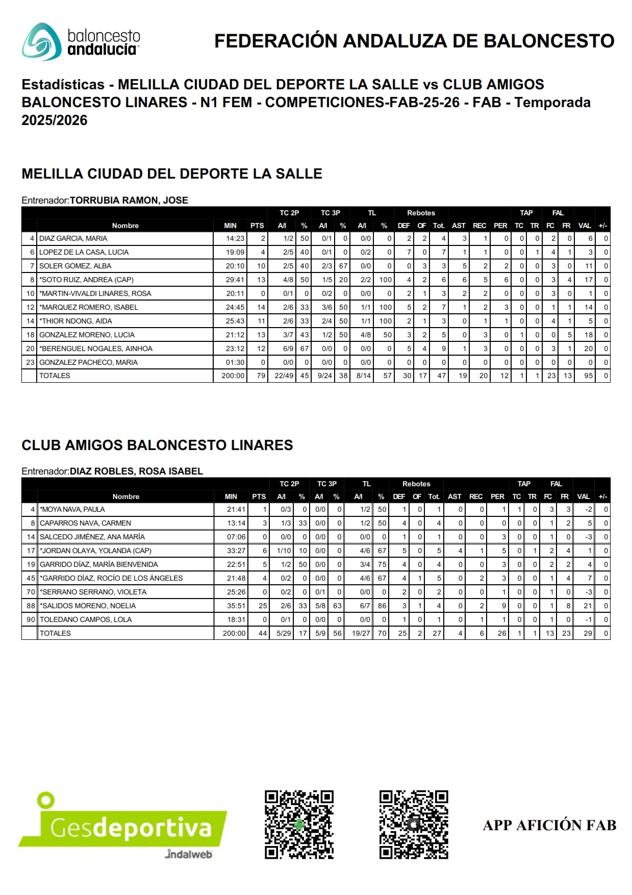 Destacaron por parte local Isabel Márquez con 14 puntos y por parte linarense Noelia Salidos con 25 puntos.