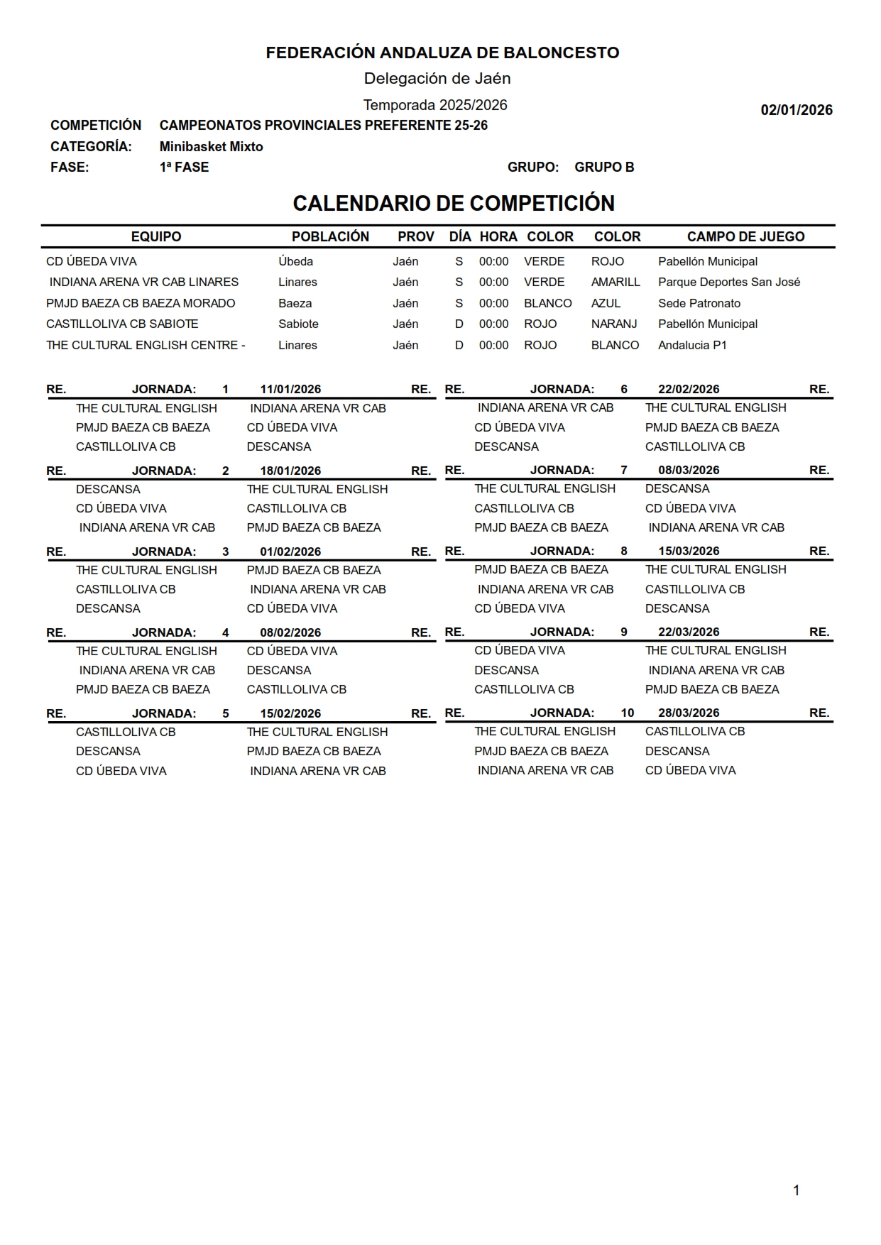 Calendario Liga Provincial Minibasket Preferente 2025/2026 webmaster Categoría: Calendarios 2025/2026 02 Enero 2026 Visitas: 116 Facebook X Anterior Siguiente