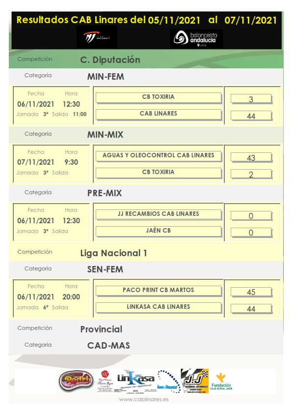 Regresaban las competiciones provinciales tras el parón motivado por el fin de semana festivo de primero de noviembre y lo hacían con resultados dispares para los equipos de CAB Linares.