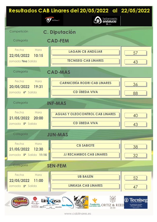 El sábado por la mañana el baby mixto recibía la visita de Linabasket en la Liga Valorcesto. El junior masculino, JJ Recambios CAB Linares, se traía una derrota de su visita a Sabiote. Por la tarde, el infantil masculino, Aguas y Olecontrol CAB Linares, tras disputar una prórroga caía derrotado ante CD Úbeda Viva.