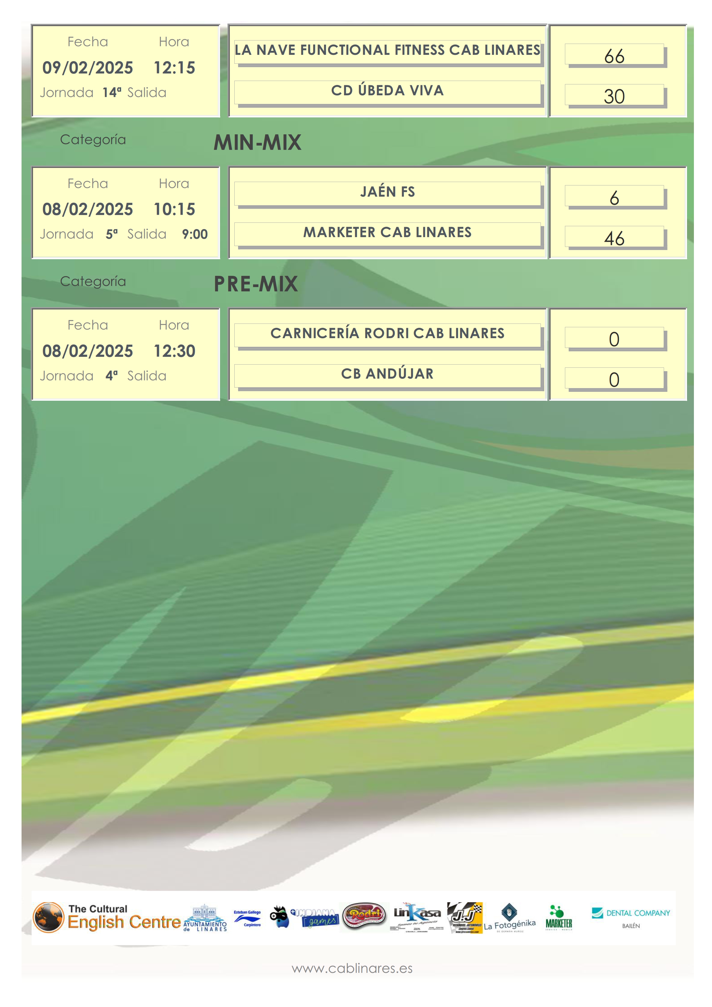 El sábado por la mañana el infantil femenino verde caía derrotado ante Jaén CB. A continuación, las compañeras del amarillo también sufrían una derrota, esta vez ante CB Andújar. Cerraba la mañana en el Huarte el premini masculino, Carnicería Rodrí CAB Linares en su partido de Liga Valorcesto ante CB Andújar. El mini mixto, Marketer CAB Linares se traía una victoria de su visista a Jaén FS.