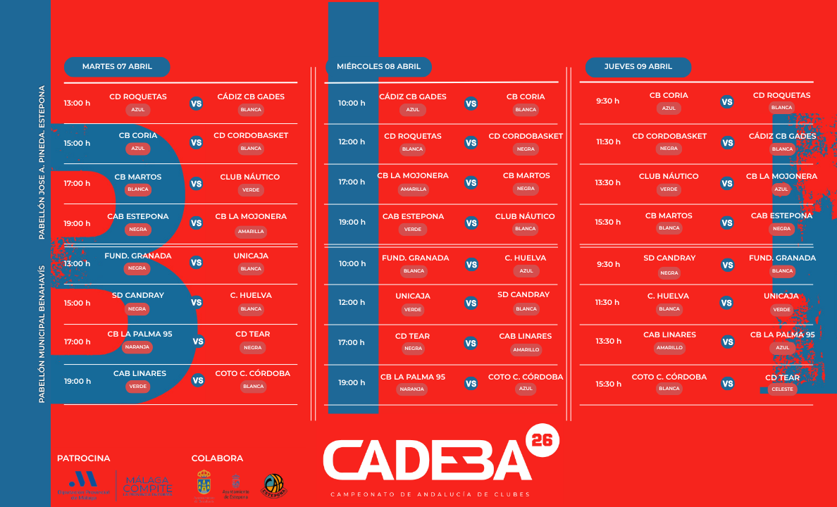 En la jornada del martes nuestro equipo se medirá en el último turno de juego con Ciudad de Córdoba. En la jornada del miércoles, también en turno de tarde, el rival será CD Tear y cerrarán la fase de grupo el jueves pasado el mediodía ante CB La Palma. Todos los partidos de la fase de grupos los disputarán nuestras chicas en el Pabellón Municipal de Benahavís.