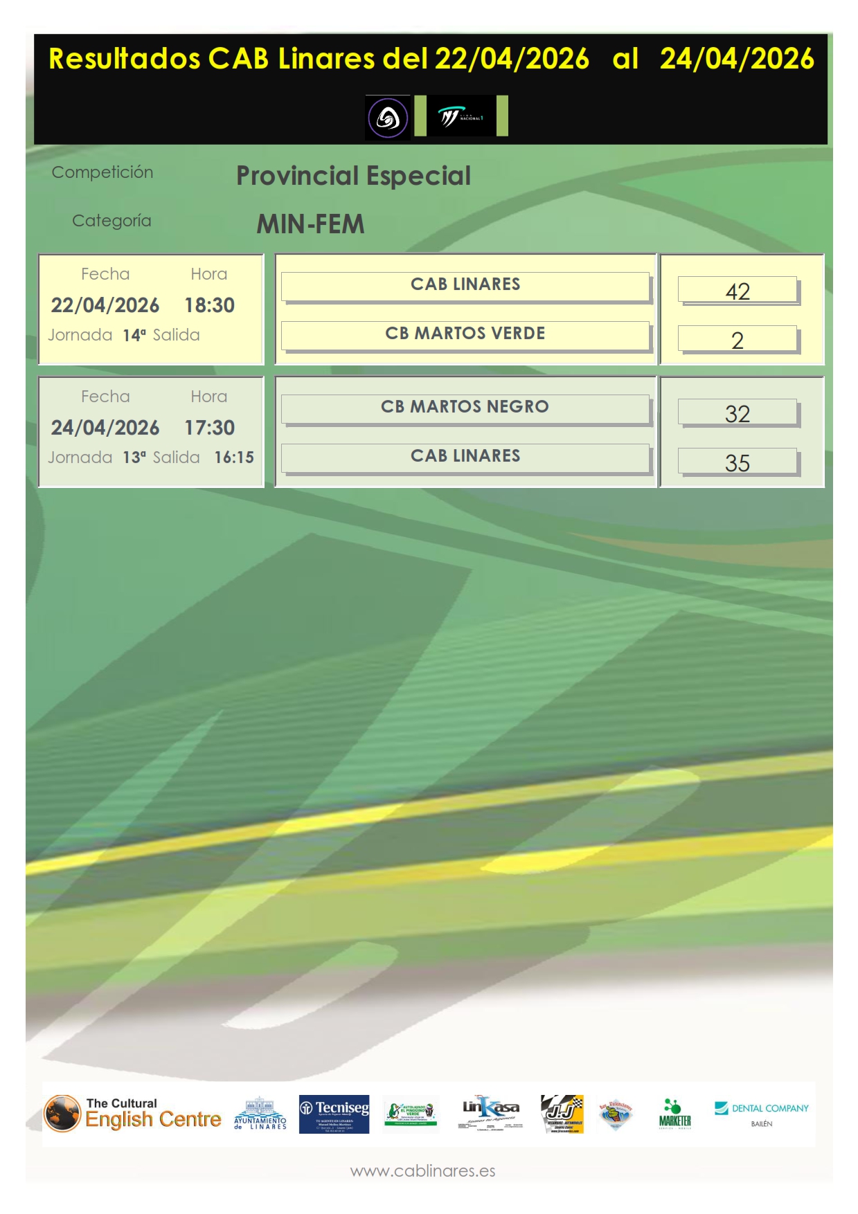 Jornada de transición debido a la celebración de la Romería de la Virgen de la Cabeza en la que nuestro club tan solo disputaba dos encuentros, ambos de la categoría minibasket femenino en los que las chicas de Rosa vencían a los equipos de CB Martos. En la tarde del miércoles se imponían en el Huarte al equipo verde y en la tarde del viernes vencían a domicilio al conjunto negro marteño.