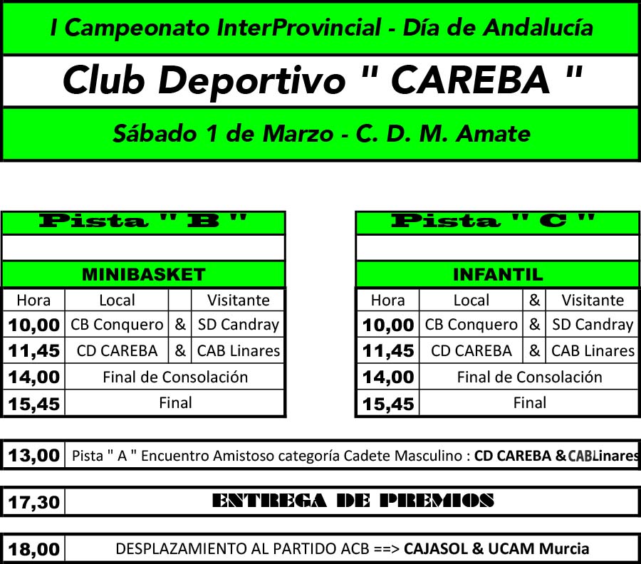 Campeonato dia de Andalucía (CAREBA) Categoría: Amistosos 18 Diciembre 2013 Visitas: 1128 Estos son los Horarios del I Campeonato InterProvincial del Día de Andalucía donde participaran varios equipos de nuestro club en Sevilla. Facebook X Anterior Siguiente