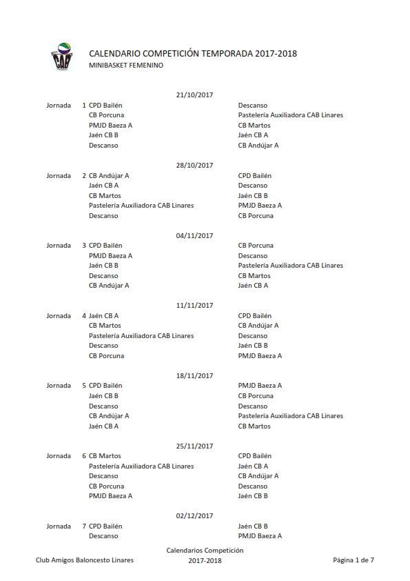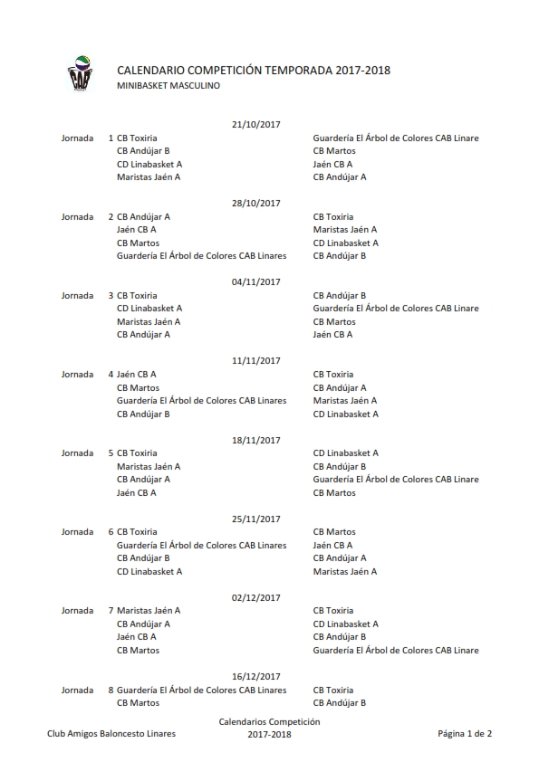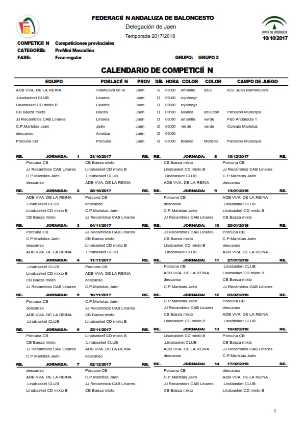 - Categoría: Calendarios 2017/2018