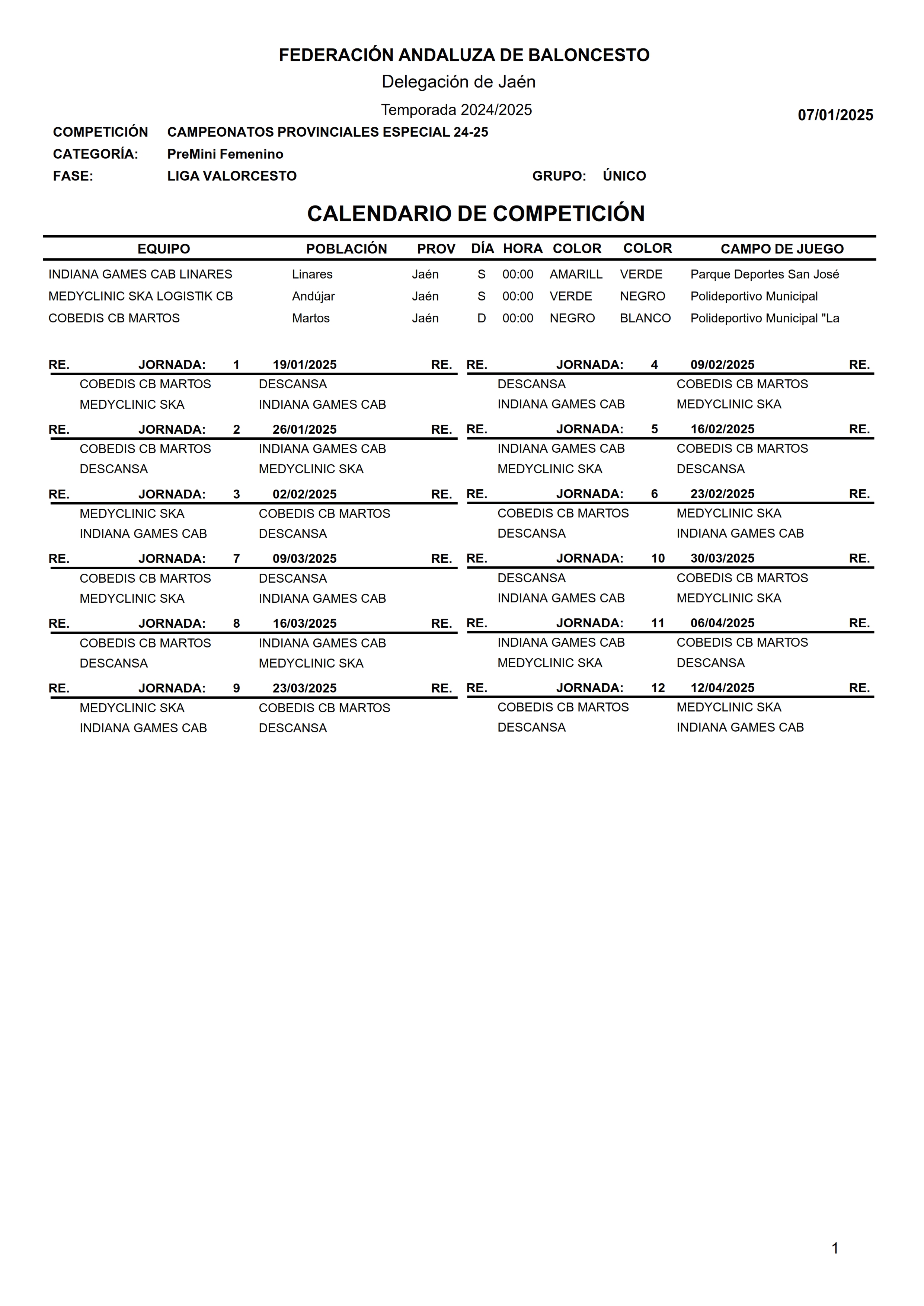 Calendario Liga Provincial Premini Femenino 2024/2025 webmaster Categoría: Calendarios 2024/2025 07 Enero 2025 Visitas: 506 Facebook X Anterior Siguiente
