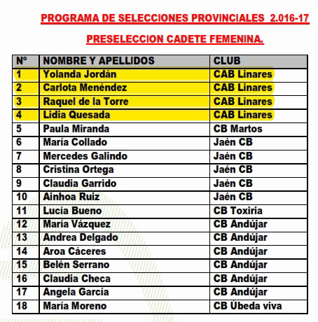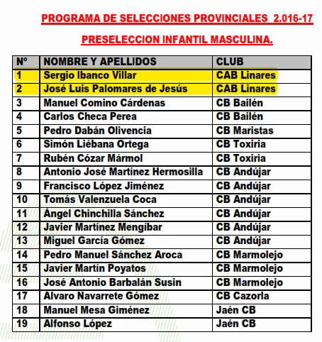 Tras la celebración de dos concentraciones los pasados fines de semana, los técnicos de la Delegación Provincial de la FAB en Jaén han elaborado listas con los preseleccionados que tendrán que acudir en los primeros días de septiembre a las concentraciones que tendrán lugar y cuya fecha será anunciada convenientemente más adelante.