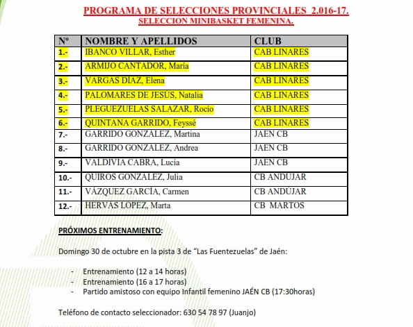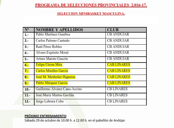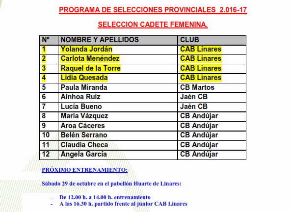 Programa de Selecciones ProvincialesCAD-FEM 29/10 LINARESMINI-MAS 29/10 ANDÚJARMINI-FEM 30/10 JAÉN |