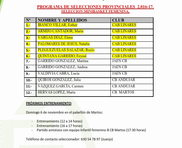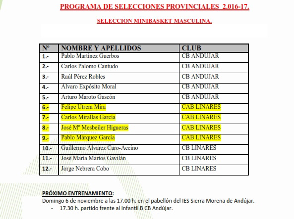 Programa de Selecciones ProvincialesMINI-MAS 06/11 ANDÚJARMINI-FEM 06/11 MARTOS |