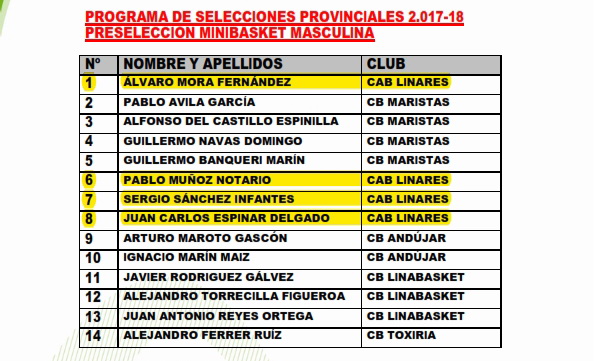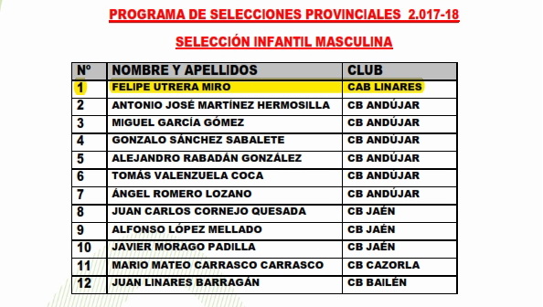 El comité técnico de la Delegación Territorial de Jaén de la FAB ha hecho públicas las convocatorias del Programa de Selecciones Provinciales para el próximo fin de semana. Esta semana se ha cerrado la selección infantil masculina en la que contaremos en ella con Felipe Utrera y la mini femenina en la que contamos con Feysse Quintana. ¡Enhorabuena a ambos!