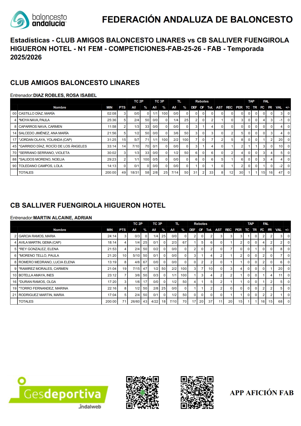 Destacaron por parte de las locales Yolanda Jordán y Rocío Garrido con 15 y 14 puntos respectivamente y Carmen Ramírez con 19 puntos por parte visitante. Dirigieron el partido los Sres. Martín y Martínez, sin eliminadas.