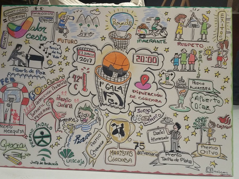 A última hora de la tarde, en el Salón de Actos de la Diputación Provincial de Córdoba se celebró la I Gala FAB, donde se entregaron premios y reconocimientos a deportistas, clubes y entidades de nuestra comunidad autónoma por sus méritos logrados. En ella también CAB Linares estuvo representado en la persona de su secretario D. Miguel Ángel de la Torre. Con la voluntad de ser un acto itinerante en próximas ediciones por las restantes provincias andaluzas, la gala contó con la presencia de los galardonados, autoridades y una buena representación de los diferentes estamentos que componen el baloncesto andaluz y fue amenizada por el pianista Alberto de Paz y el creativo Rafa López que nos dejó un lienzo en el que plasmó todo lo acaecido durante la gala.