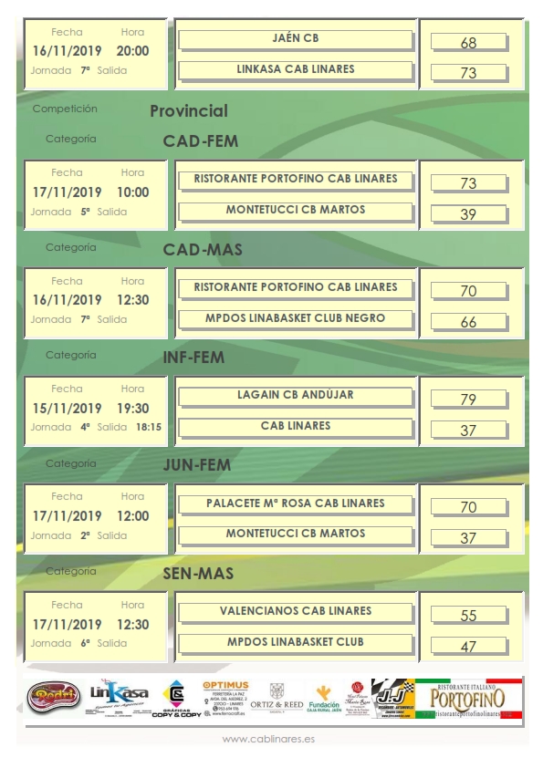 El domingo por la mañana el cadete femenino Ristorante Portofino CAB Linares se deshacía de CB Martos en partido disputado en el Huarte. El junior femenino Palacete Mª Rosa CAB Linares tras un comienzo frío se imponía tras un gran tercer cuarto al equipo senior de CB Martos. Cerraba la jornada el senior masculino provincial Valencianos CAB Linares con victoria en el derbi local con Linabasket.