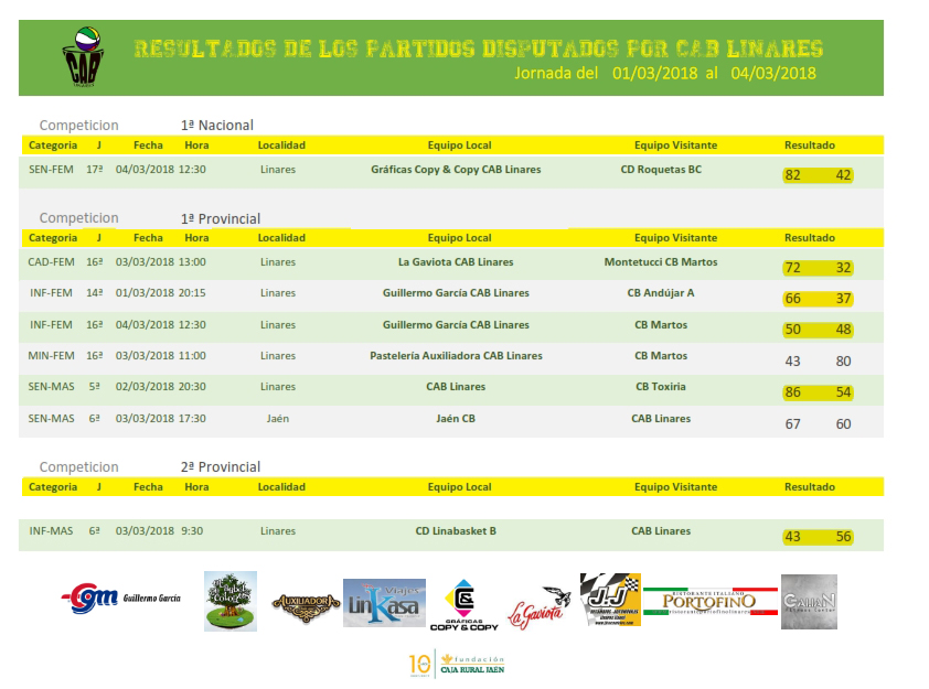 Otra buena jornada de resultados para los equipos de CAB Linares que competían en esta jornada.