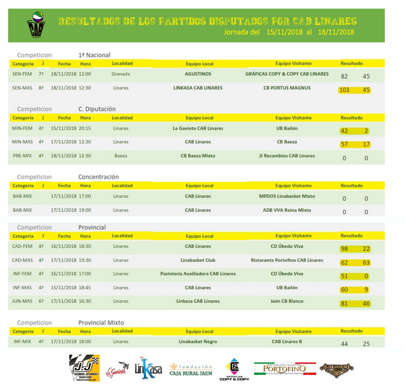 Por la tarde el junior masculino Linkasa CAB Linares vencía en su partido ante el equipo B de Jaén CB y el cadete masculino Ristorante Portofino CAB Linares se imponía por un ajustado marcador a Linabasket en partido que se resolvió tras disputarse una prórroga.