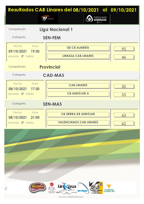 Tres partidos nos dejaba esta segunda jornada de competición oficial y tres derrotas cosecharon los equipos de CAB Linares que intervenían en ellos.