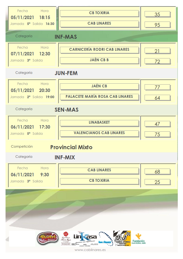 El domingo por la mañana el mini mixto Aguas y Oleocontrol CAB Linares vencía en su duelo con CB Toxiria y el infantil masculino debutaba en la competición provincial con derrota en casa ante Jaén CB.