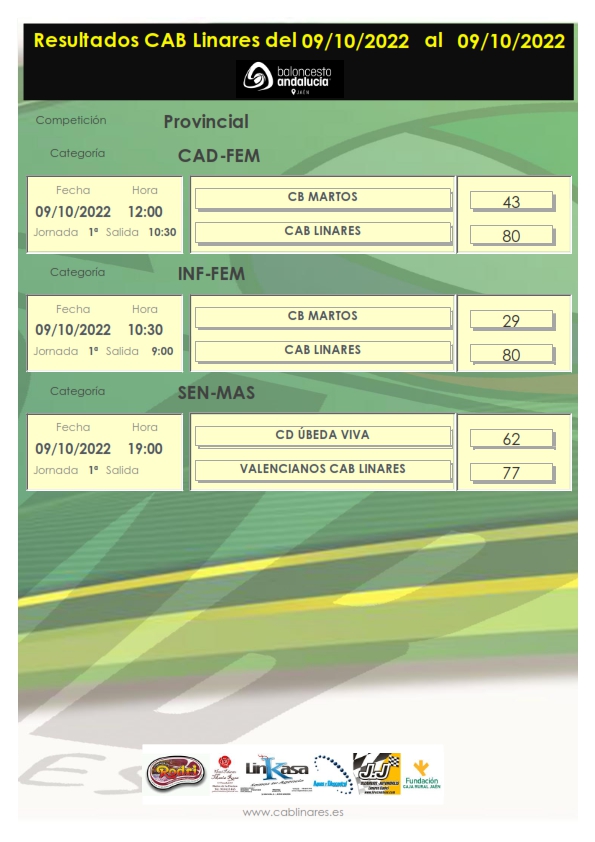 En Martos, el infantil de Rosa se imponía con claridad a las locales, siendo superiores en todos y cada uno de los cuartos del partido. A continuación el cadete femenino hacía lo propio, pero esta vez con una dinámica más ajustada hasta mediado el tercer período, en el que las de Miguel A. rompían el partido para finalmente conseguir una holgada victoria.