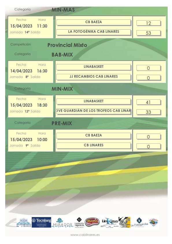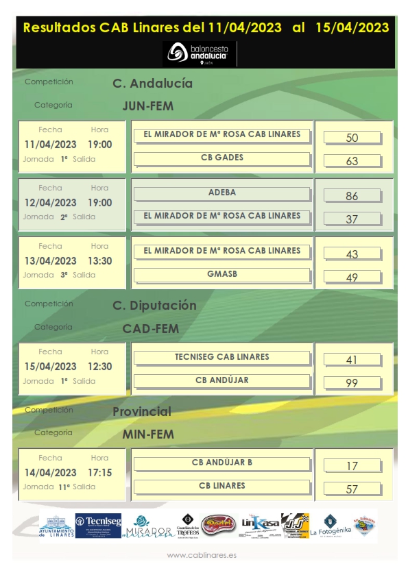 En la tarde el viernes el baby mixto JJ Recambios CAB Linares disputaba su partido de Liga Valorcesto ante Linabasket. El mini femenino CB Linares CAB Linares se imponía en su visita al equipo B de CB Andújar.