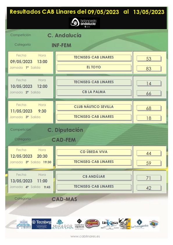Desde el martes, el equipo infantil femenino Tecniseg CAB Linares disputaba el Campeonato de Andalucía de la categoría en la localidad onubense de Isla Cristina, en el que, como hemos informado puntualmente en nuestra web, contó sus partidos por derrotas, no pudiendo así pasar de la fase de grupos.