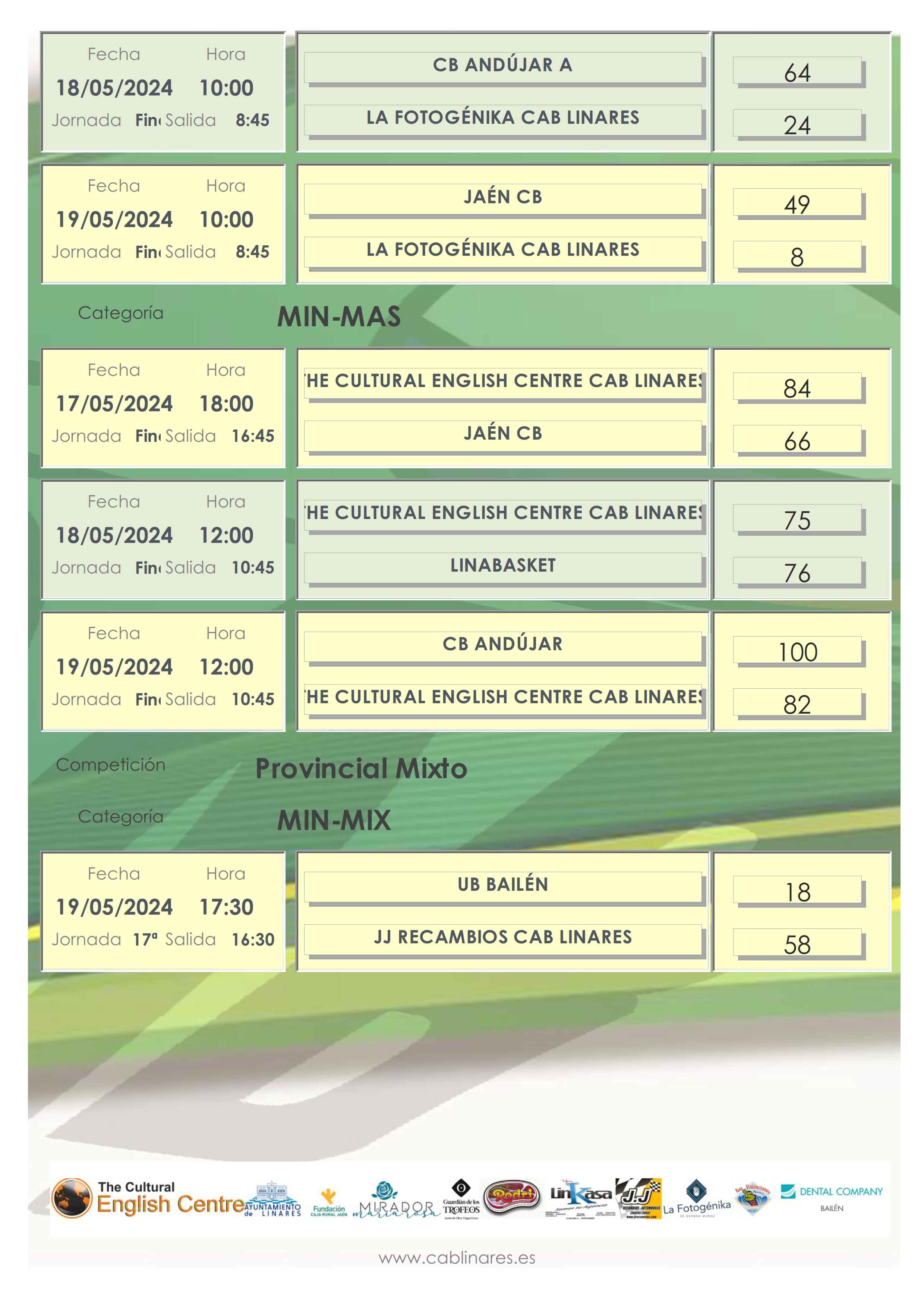 Cerraba la jornada el mini mixto, JJ Recambios CAB Linares que se imponía en su partido en Bailén y que a falta de una jornada para concluir la liga tiene asegurada la cuarta plaza.