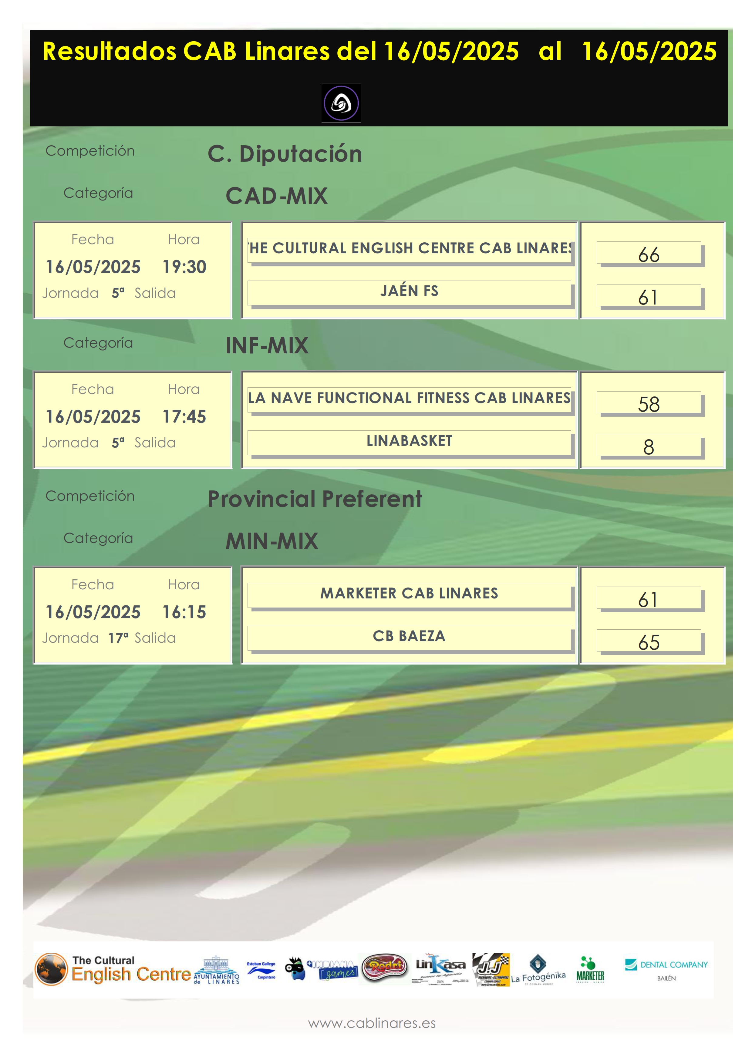 El mini mixto, Marketer CAB Linares intentaba ante CB Baeza, rival directo en el Campeonato Provincial, ascender alguna plaza, pero los chicos de Jaime García fueron derrotados por una corta diferencia que les deja como cuartos clasificados a una jornada de finalizar la liga regular.
