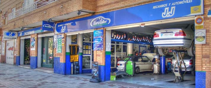 JJ Recambios cuenta con personal altamente cualificado para atender su vehículo, reciclado constantemente a través de cursos impartidos por los principales fabricantes, lo cual les permite garantizar que la reparación será efectuada en tiempo y satisfacción más corto posible. Pertenece al grupo EUROTALLER, uno de los más grandes de España y las reparaciones están garantizadas en los talleres EUROMASTER de todo el país. También ofrecen vehículos de ocasión, disponiendo de un amplio stock.
