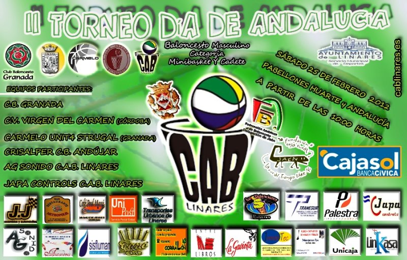 II Torneo Día de Andalucía CAB Linares webmaster Categoría: Galerías Fotográficas 03 Abril 2015 Visitas: 992 Facebook X Anterior Siguiente