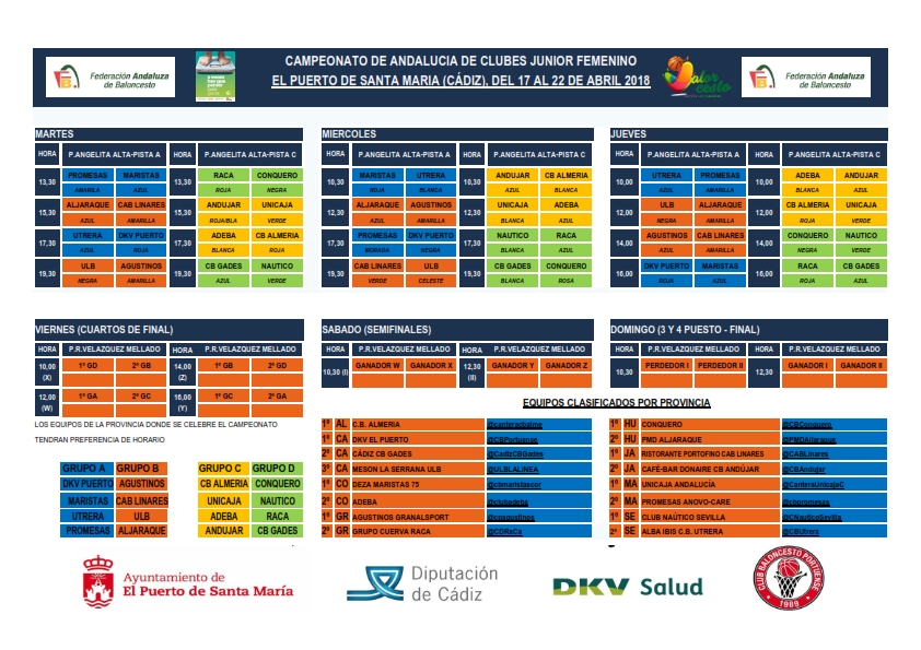 El campeonato comienza el próximo martes día 17 de abril y nuestro equipo tendrá el siguiente calendario en la fase de grupos: