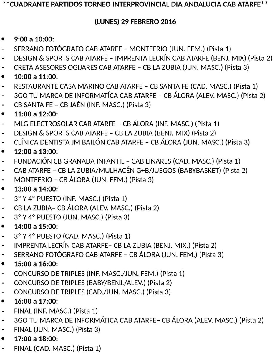 El próximo día 29 de febrero el club granadino CAB Atarfe ha tenido a bien invitarnos a su I Torneo Interprovincial Día de Andalucía. El equipo cadete masculino A Remolques Marchal CAB Linares disputará un cuadrangular junto con Fundación CB Granada infantil masculino, CAB Atarfe y CB Santa Fe.
