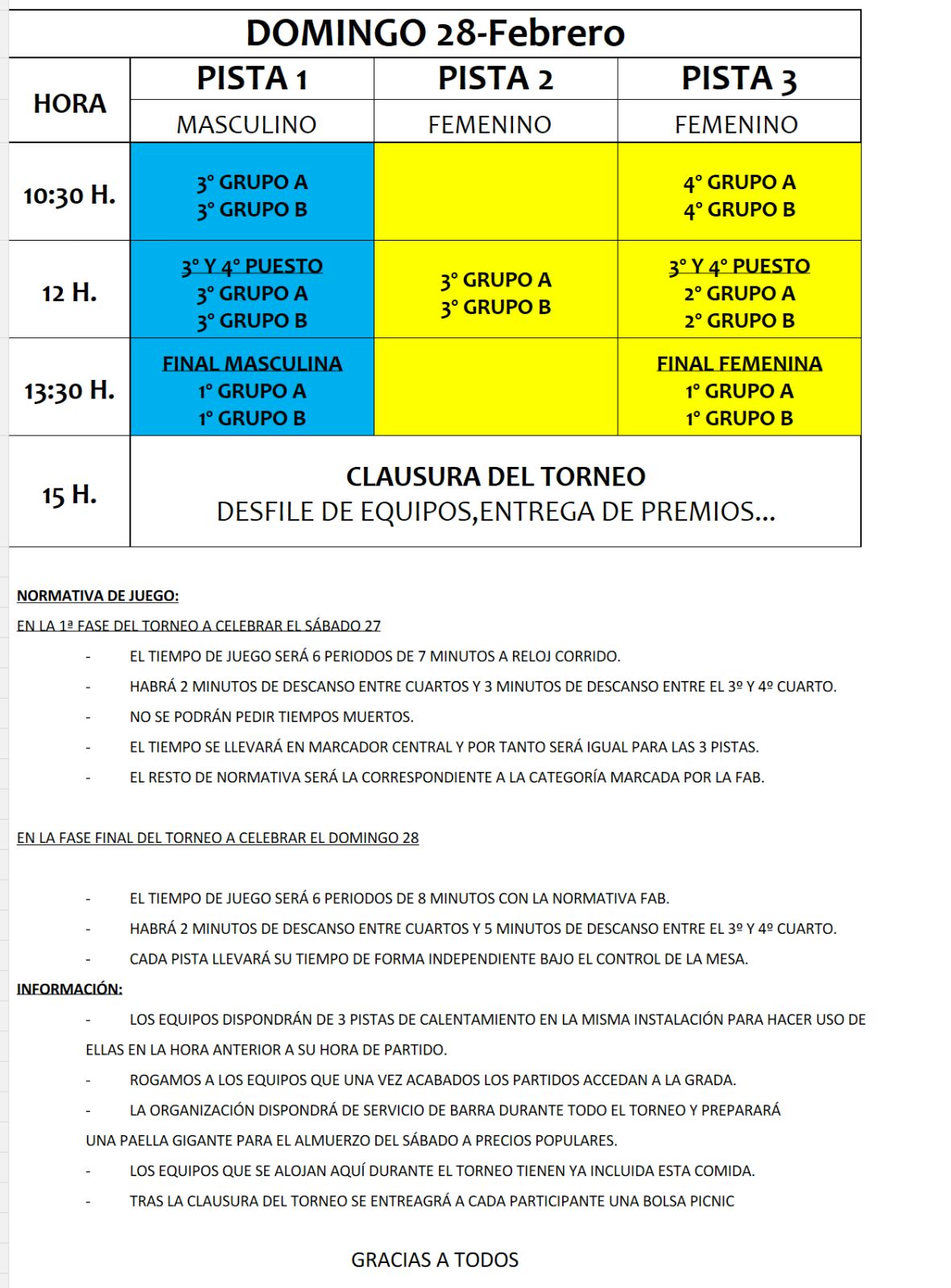 A continuación la programación completa del Torneo y las normas específicas de la competición.