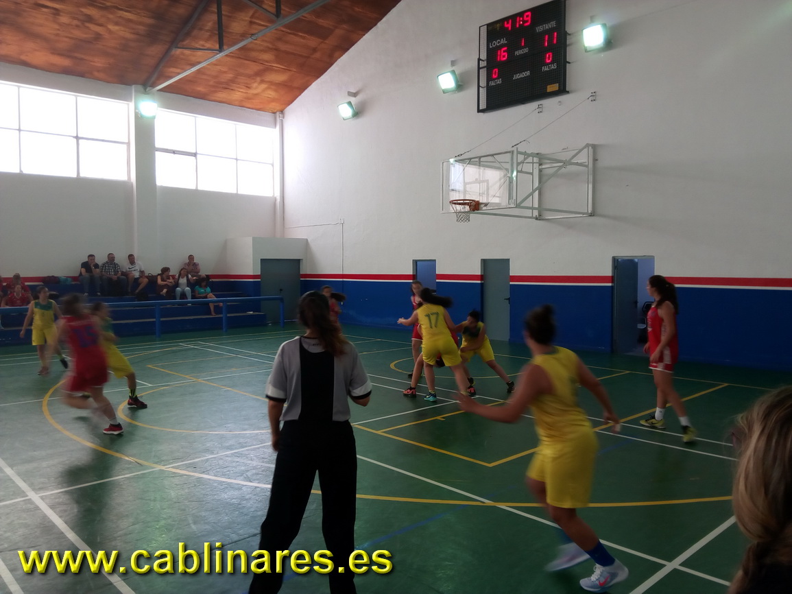 Abríamos la jornada de tarde con la disputa del partido junior femenino que enfrentaba a nuestro equipo con Maristas. Partido algo extraño en el que durante la primera parte las chicas de Eusebio alcanzaban ventajas cómodas en el marcador y que se fueron reduciendo poco a poco a medida que el partido avanzaba, terminando con un final apretado favorable a CAB Linares.