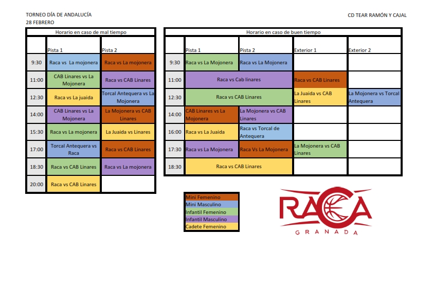 El próximo miércoles, Día de Andalucía, nuestros equipos mini femenino, infantiles, masculino y femenino y cadete femenino se desplazan a Granada, invitados por CD Tear Ramón y Cajal, para disputar un torneo de carácter amistoso.