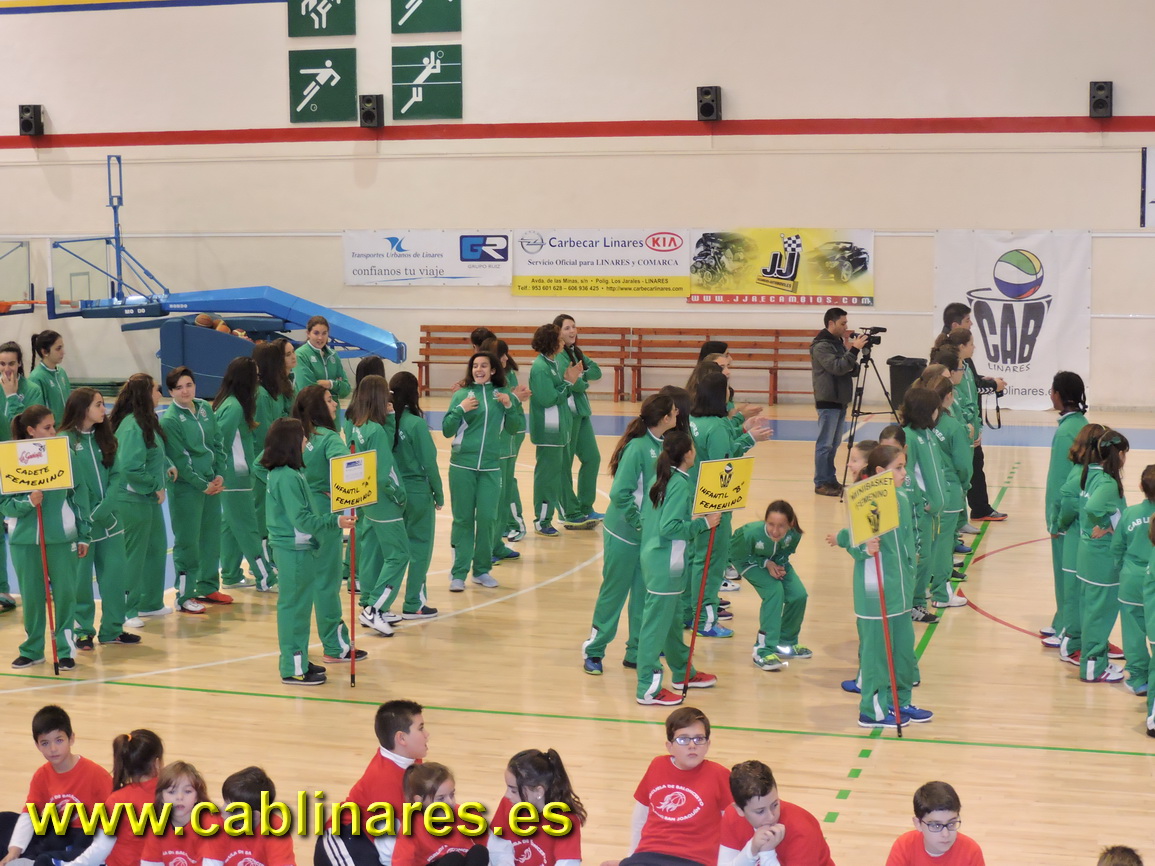 Tras los concursos tuvo lugar el desfile de los dieciocho equipos que componen CAB Linares esta temporada, desde las escuelas CAB, hasta los equipos senior, pasando por todas las categorías de formación del club.