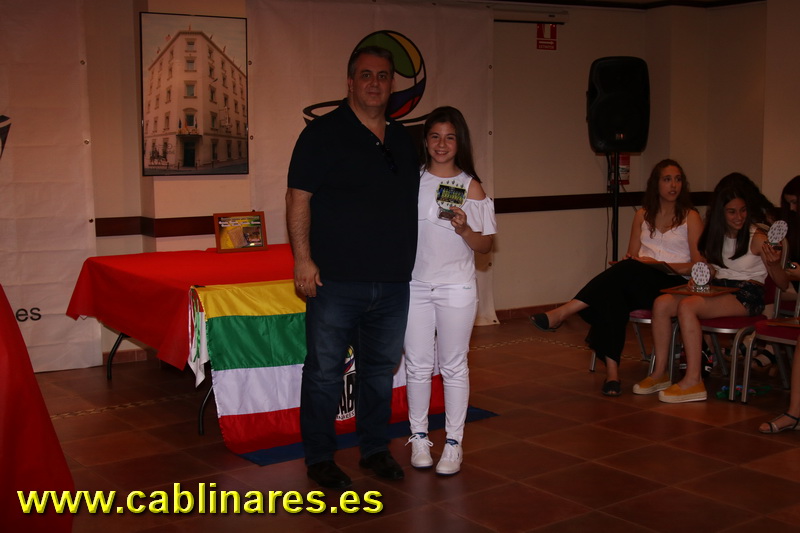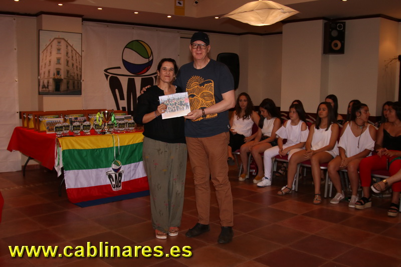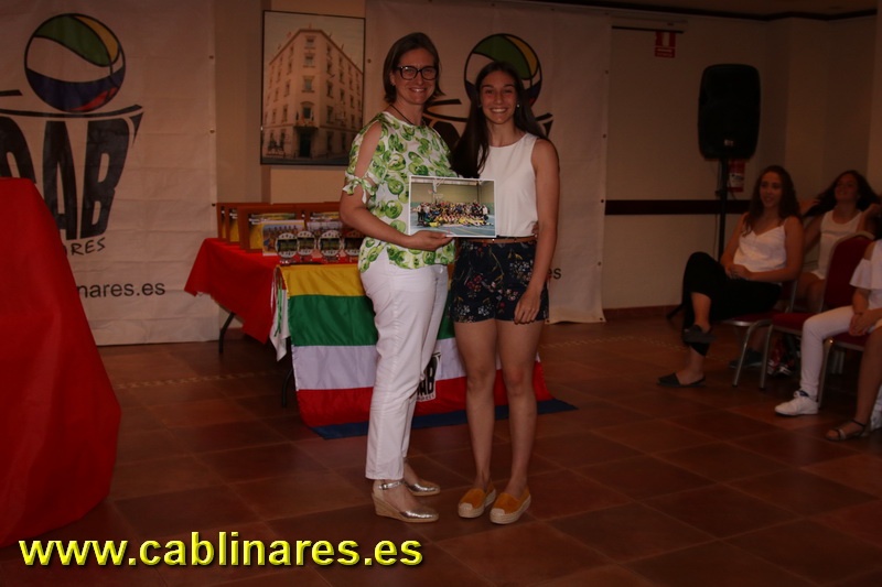 Las compañeras senior y junior con las que han trabajado durante toda la temporada fueron las encargadas de entregar a las jugadoras un recuerdo de la temporada consistente en un foto-montaje con la foto de la entrega de trofeos y el acta del partido final de campeonato andaluz así como una copia de los videos del los campeonatos andaluz y nacional y una extensa galería fotográfica de ambos campeonatos. Recibió también un agradecimiento Ana B. Casas, fisioterapeuta que acompañó al equipo durante los campeonatos.