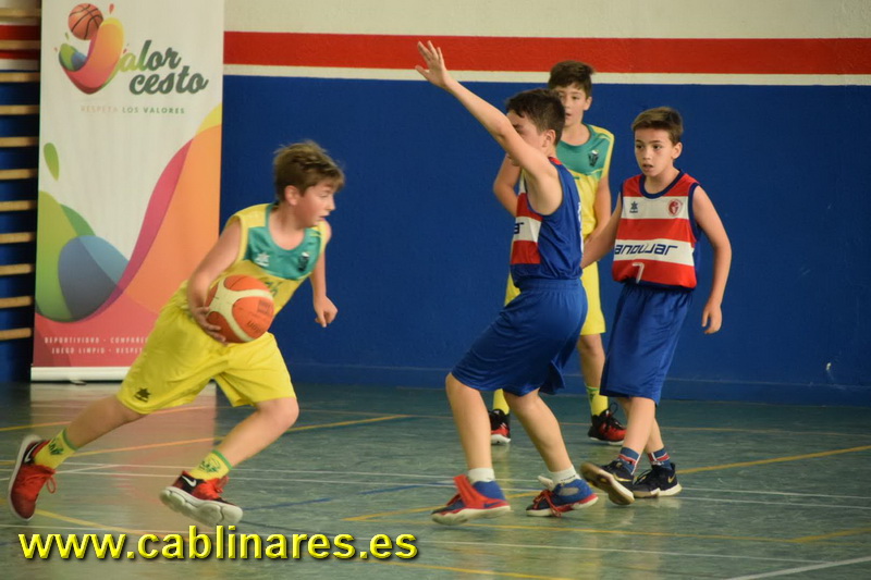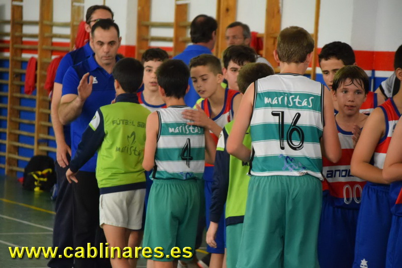La jornada del domingo comenzaba con un partido intrascendente entre Dirroser CB Andújar, que en la jornada del sábado ya había obtenido el campeonato provincial y la plaza para el Campeonato de Andalucía, y un MPDOS Linabasket Club, que nada tenía ya en juego. Victoria cómoda para los iliturgitanos que completaban así una fase final plena de victorias. En el segundo partido estaba en juego el subcampeonato provincial entre nuestros chicos de Guardería El Árbol de Colores CAB Linares y CD Maristas Jaén. El partido comenzó con los chicos de Isra muy intensos en todas las facetas del juego e iban logrando cuarto a cuarto ir abriendo brecha en el marcador hasta el descanso, en el que el electrónico indicaba un 40-27 que dejaba el partido claramente de cara para los intereses amarillos. Pero como es habitual en esta categoría, hasta el último segundo todo está por decidir y así los colegiales volvieron en la segunda media parte con la clara intención de no darse por vencidos y con un 4-20 de parcial en el cuarto período y un 12-23 en el quinto desarbolaban a los nuestros entrando en el último período con un 56-70 que acercaba a los capitalinos al subcampeonato provincial. Tocaba de nuevo apelar a la épica para remontar un partido que se había puesto muy cuesta arriba, y volvieron a hacerlo, fuerte defensa, rápidos contraataques, fortaleza reboteadora y muchas ganas fueron los ingredientes que llevaron a los chicos de Isra, Juan Carlos y Fernando a igualar el partido a falta de dos minutos para el fin del mismo y a vencer finalmente por un marcador de 77-72 que les daba el subcampeonato provincial.