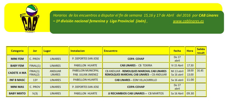 Otra jornada para los equipos de CAB Linares en la que se disputan encuentros con títulos en juego.