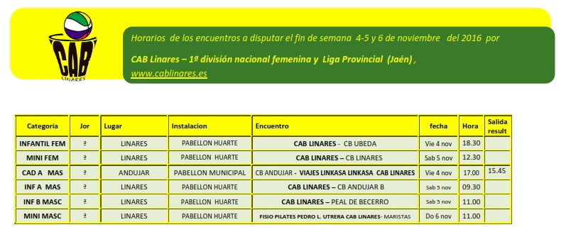 Inicia la jornada en la tarde del viernes cadete masculino A Viajes Linkasa CAB Linares, que se desplaza a Andújar a disputar su encuentro con CB Andújar B. El infantil femenino disputa su partido, tras la confección del nuevo calendario de juego, ante CD Úbeda Viva a partir de las 18:30 h en el Pabellón Huarte.