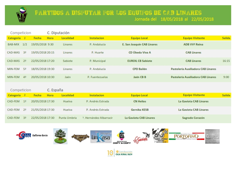 Jornada corta en partidos que viene marcada por la participación de nuestro equipo cadete femenino La Gaviota CAB Linares en el Campeonato de España en tierras onubenses.
