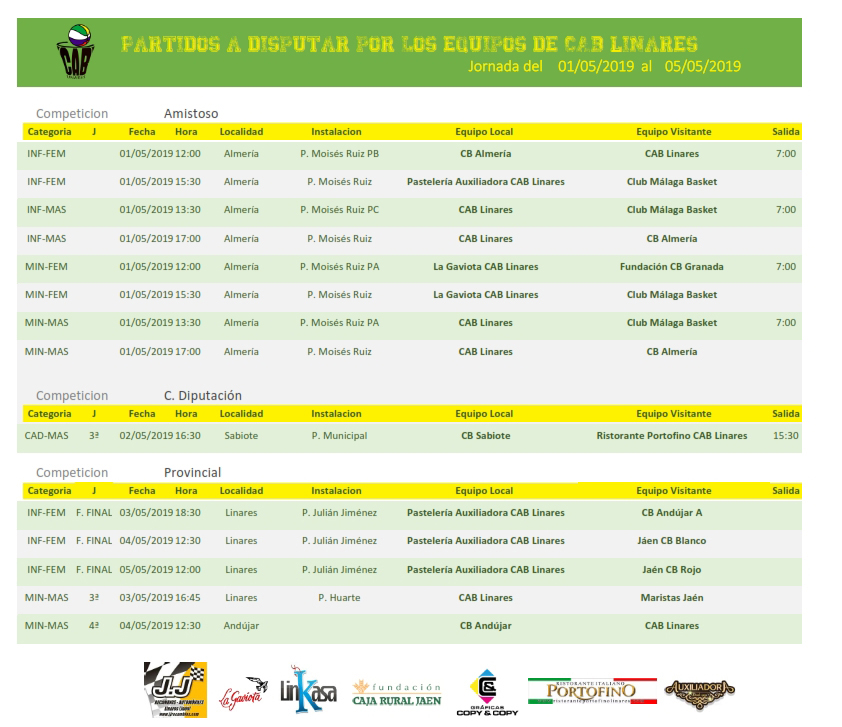 Antes, mañana día 1 de mayo, se aprovecha la jornada festiva para viajar a Almería donde el club CB Almería ha invitado a nuestros equipos minis e infantiles a disputar un torneo de carácter amistoso en el que nuestros equipos se medirán con clubes de la geografía andaluza y que servirá como preparación para la recta final de las competiciones en las que están inmersos.