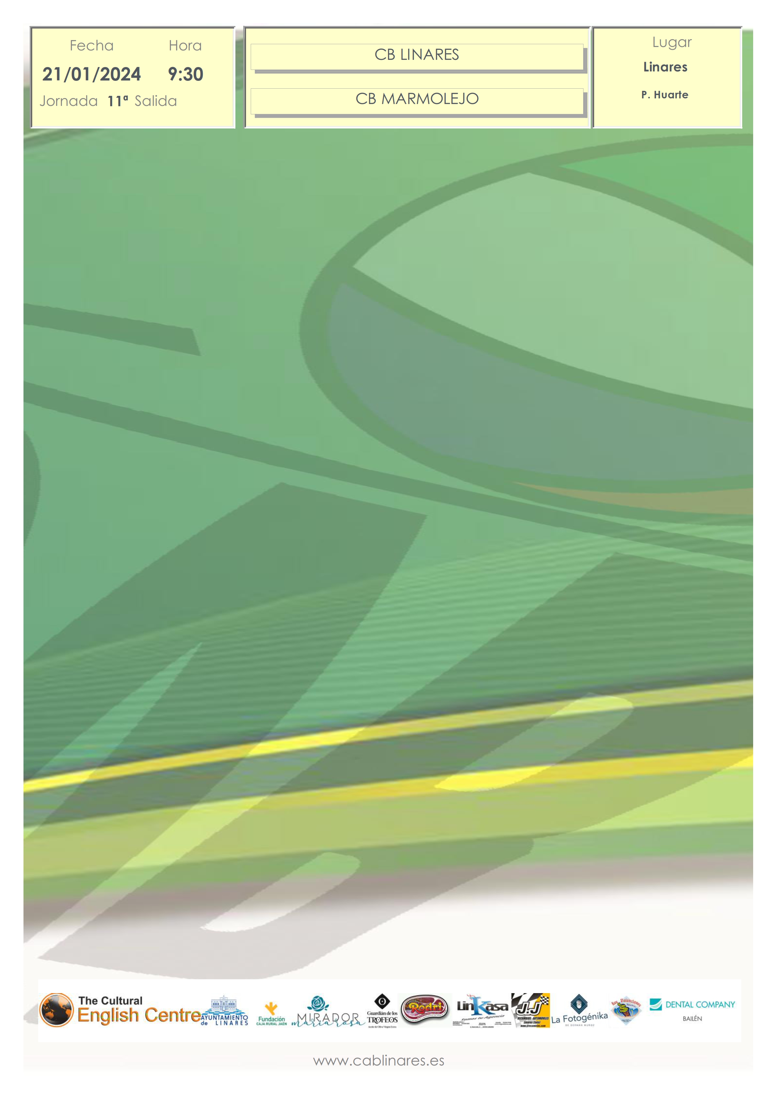 Nueva jornada de competición para los equipos de CAB Linares que comenzará en la tarde del viernes con la disputa de dos encuentros, ambos en el Huarte. El primero de ellos de categoría mini masculina, que enfrentará a nuestro equipo The Cultural English Centre CAB Linares con CB Baeza. A continuación el infantil femenino Dental Company CAB Linares se medirá con Linabasket.