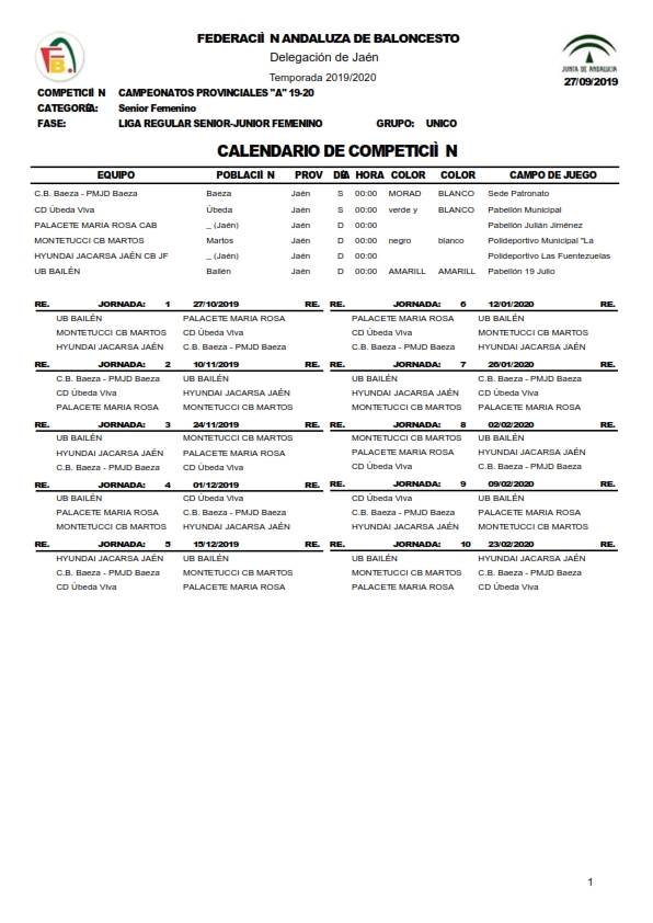 Calendario Junior Femenino 2019/2020 webmaster Categoría: Calendarios 2019/2020 27 Septiembre 2019 Visitas: 3142 Facebook X Anterior Siguiente