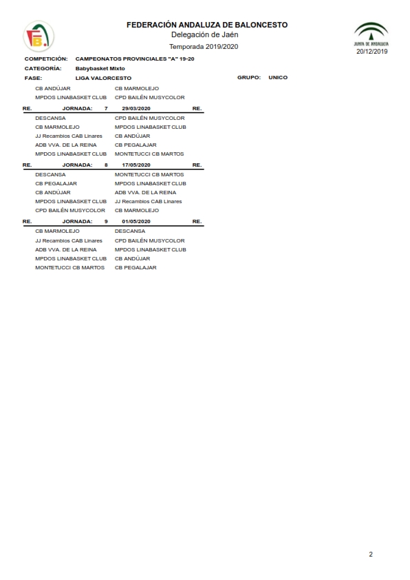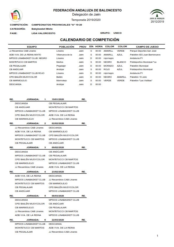 Calendario BABY-MIX Liga 2019-2020 webmaster Categoría: Calendarios 2019/2020 23 Diciembre 2019 Visitas: 3128 Facebook X Anterior Siguiente
