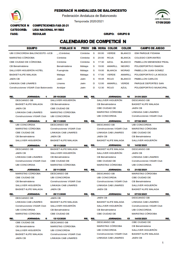 La Federación Andaluza de Baloncesto ha hecho pública la nueva organización y calendario de la competición de Liga Nacional 1 como consecuencia de los cambios en los protocolos para hacer frente a la pandemia provocada por el virus COVID19.