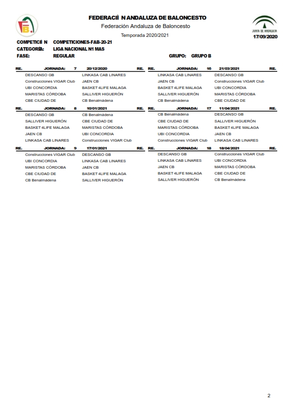 Nuestro equipo Linkasa CAB Linares ha quedado encuadrado en el grupo B, con los clubes cordobeses y malagueños con el calendario que se muestra a continuación: