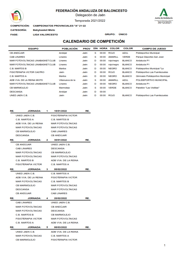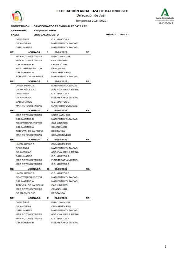 La Delegación Provincial de la FAB ha hecho público el calendario de Liga Valorcesto de la categoría Baby-Mixto, en la que nuestro equipo competirá con otros nueve conjuntos de la provincia.