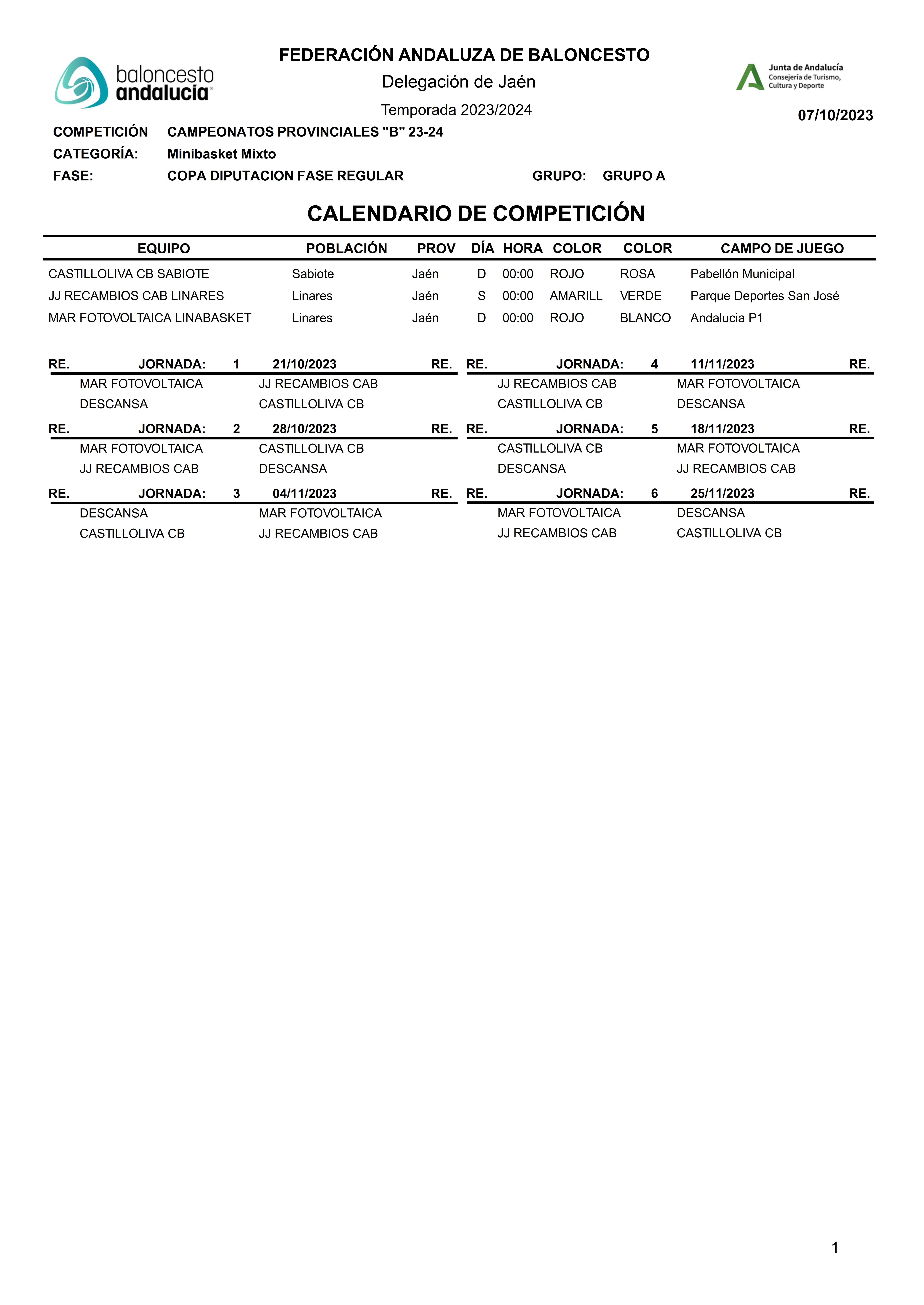 Calendario Copa Diputación Minibasket Mixto 23/24 webmaster Categoría: Calendarios 2023/2024 07 Octubre 2023 Visitas: 1164 Facebook X Anterior Siguiente