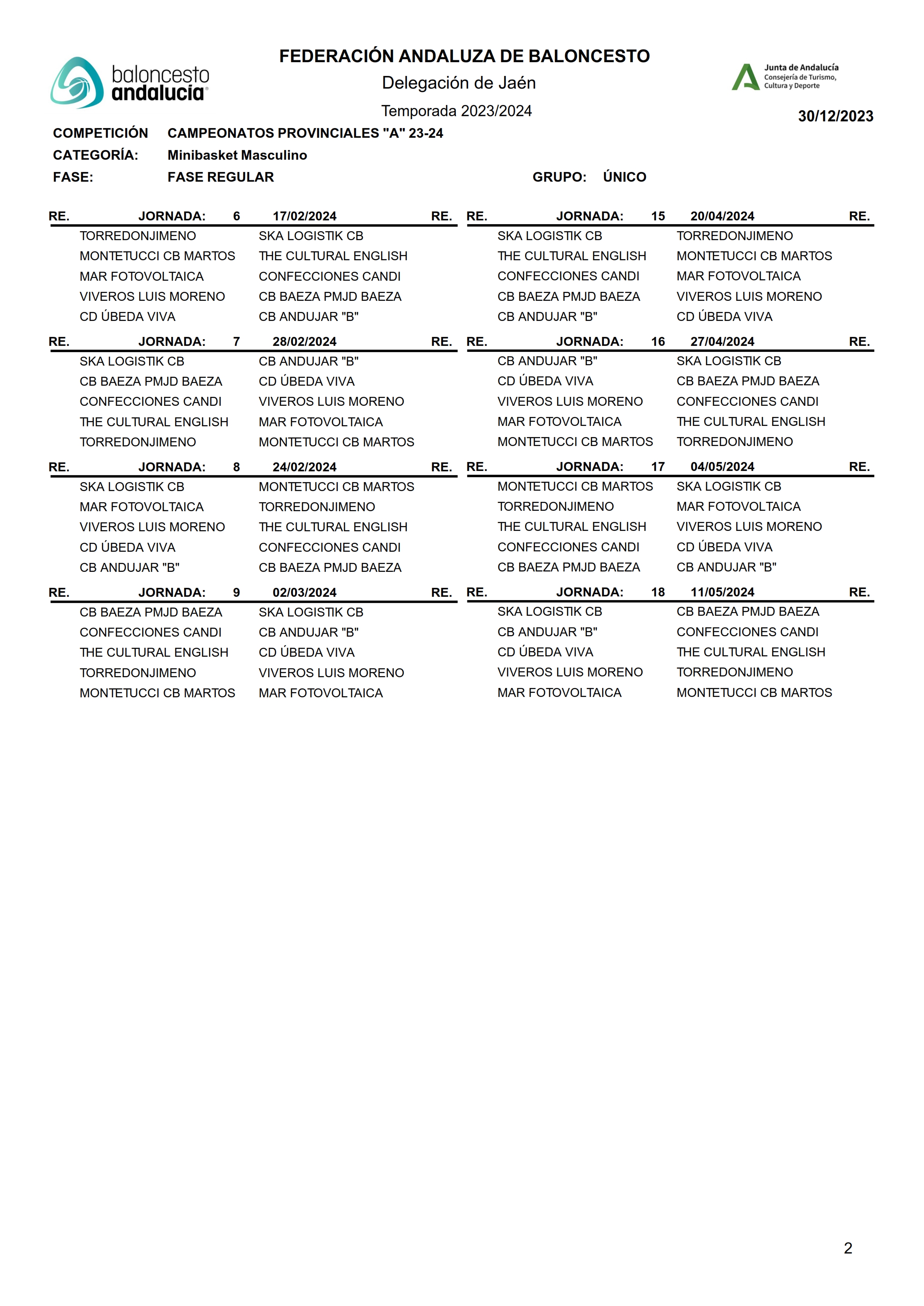 Calendario Liga Provincial Minibasket Masculino 23/24 webmaster Categoría: Calendarios 2023/2024 30 Diciembre 2023 Visitas: 927 Facebook X Anterior Siguiente