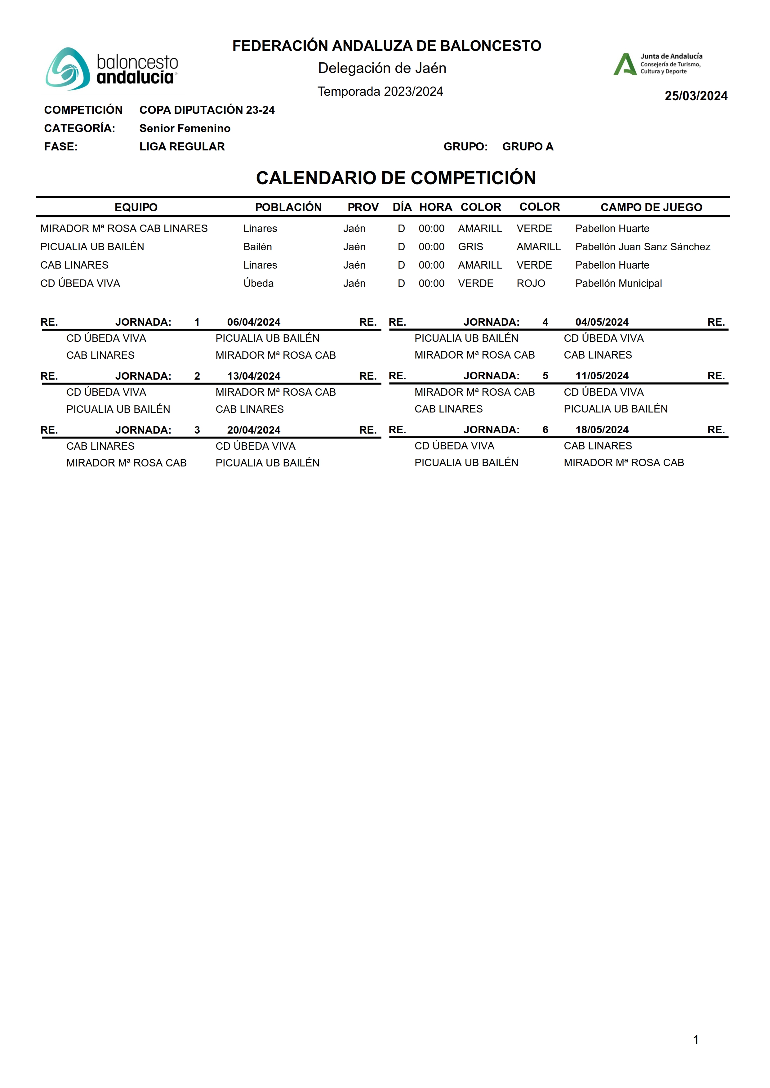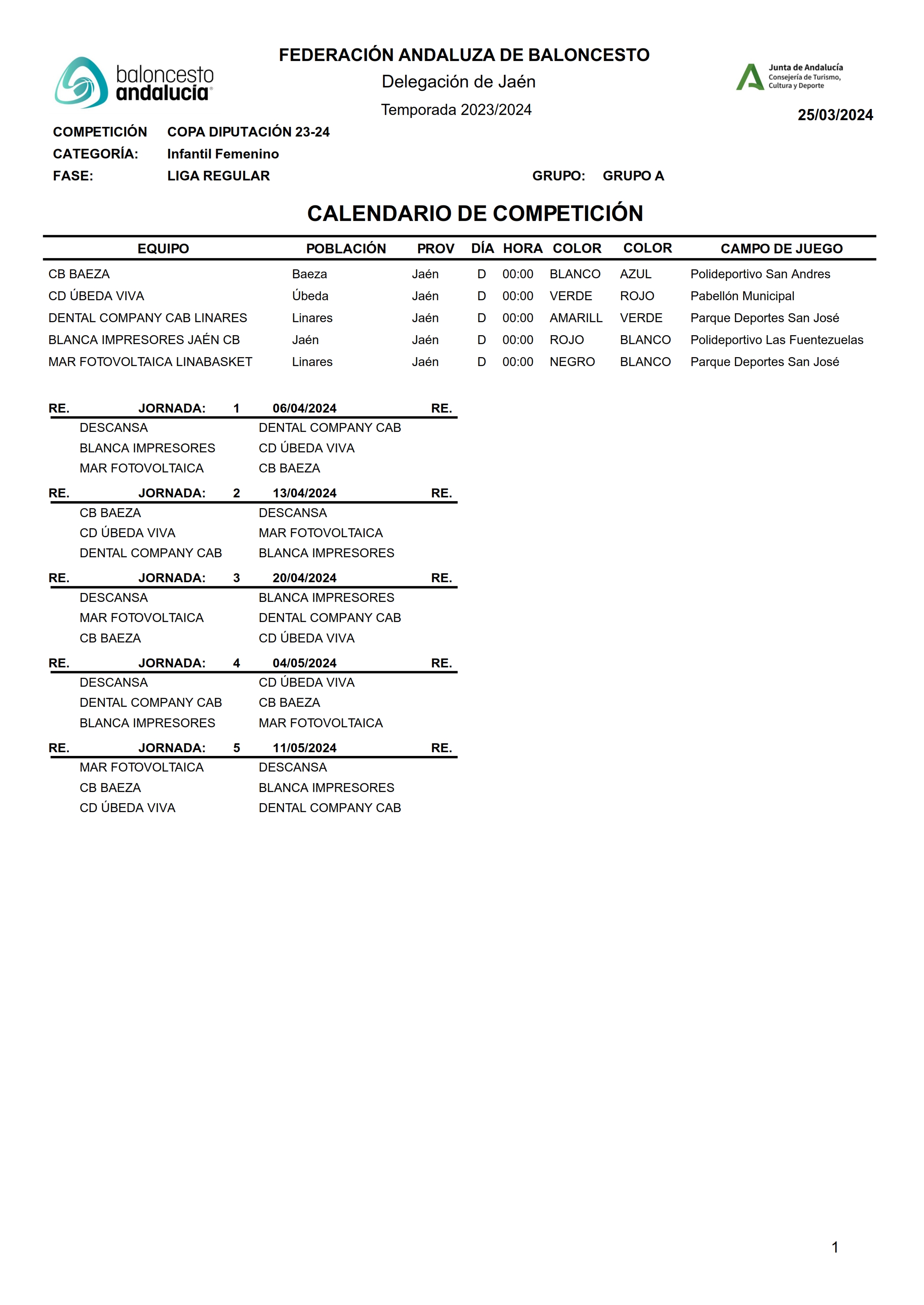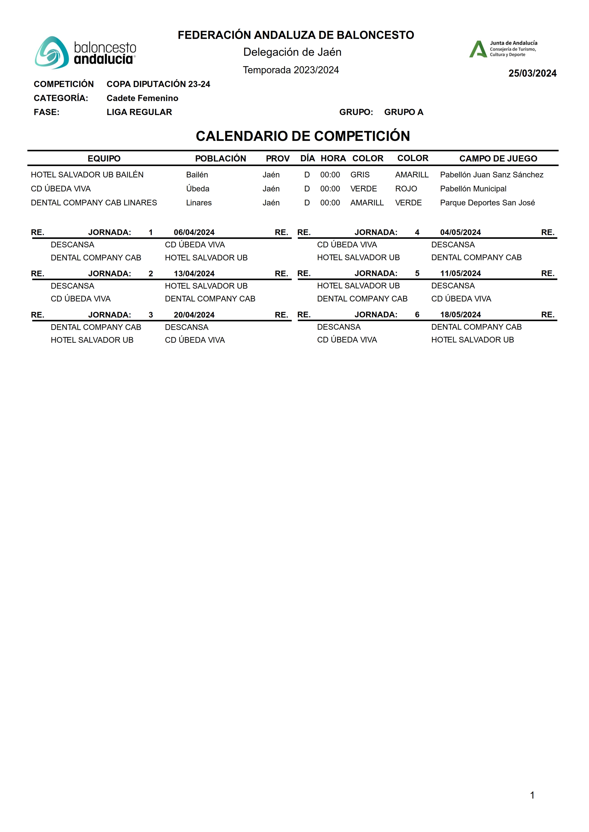 La Delegación Provincial de la FAB ha hecho públicos los calendarios de la Copa Diputación correspondiente a las categorías féminas, cadete e infantil que comenzarán a disputarse a partir del fin de semana del 5-6 de abril.